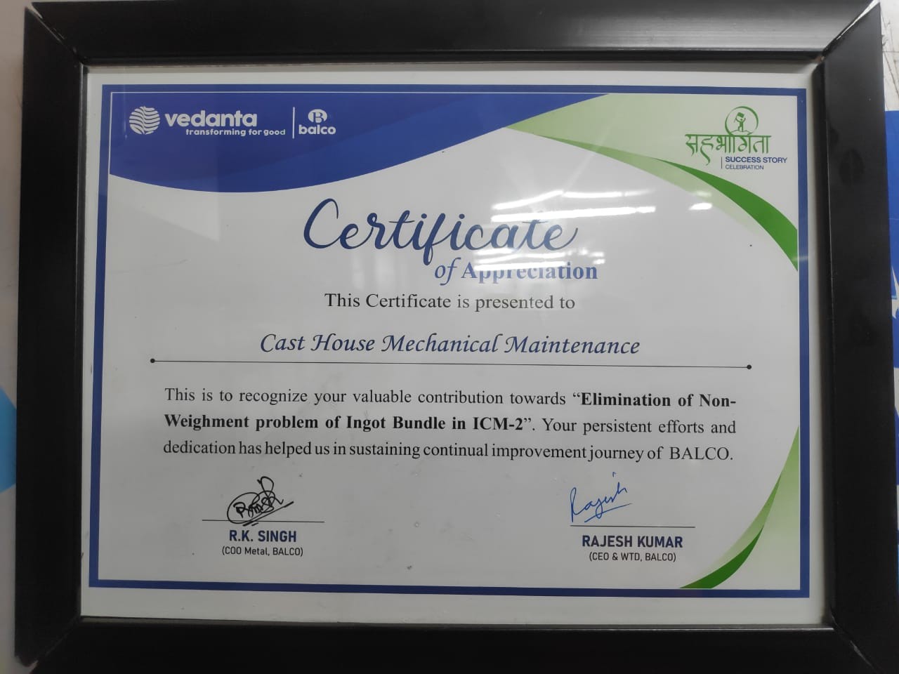 Awarded for exceptional efficiency during breakdown maintenance of port cranes.